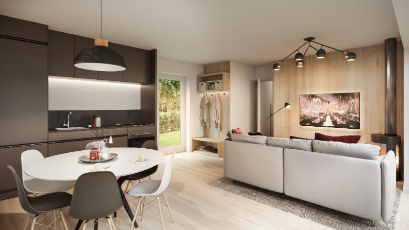 Une architecture intérieure et extérieure inspirée de la nature de par l’utilisation de matériaux nobles tels que le bois ou la pierre. Des lignes épurées viennent compléter ces habitations.